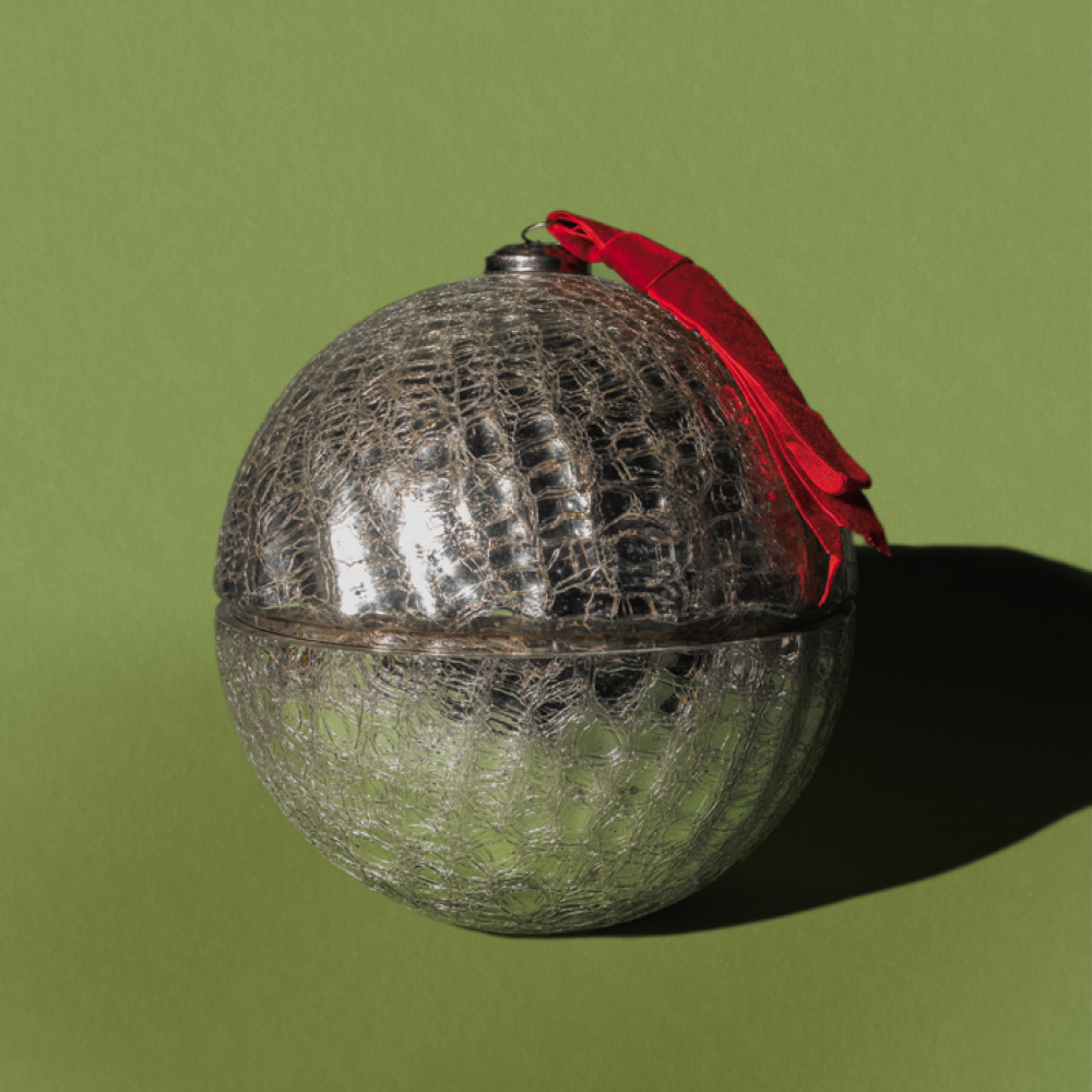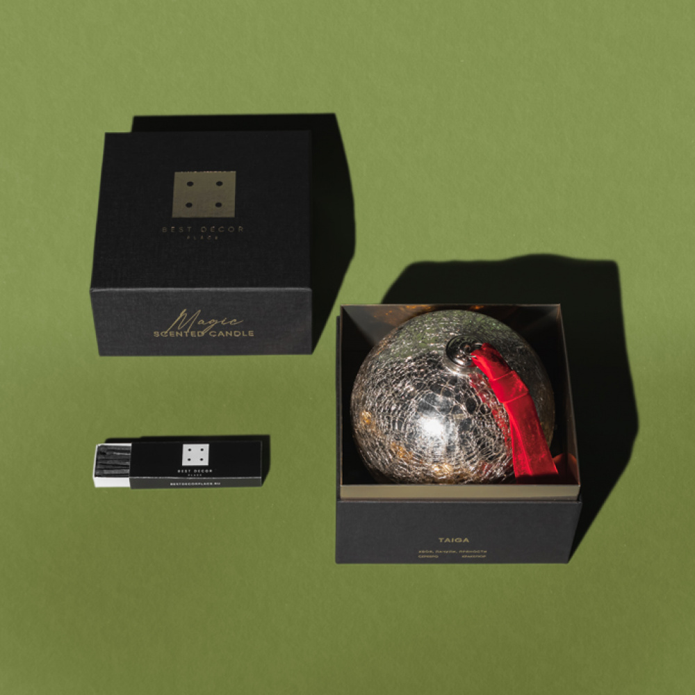 Новогодняя свеча в форме шара с кракелюрной текстурой — стильный элемент декора и готовый подарочный вариант.