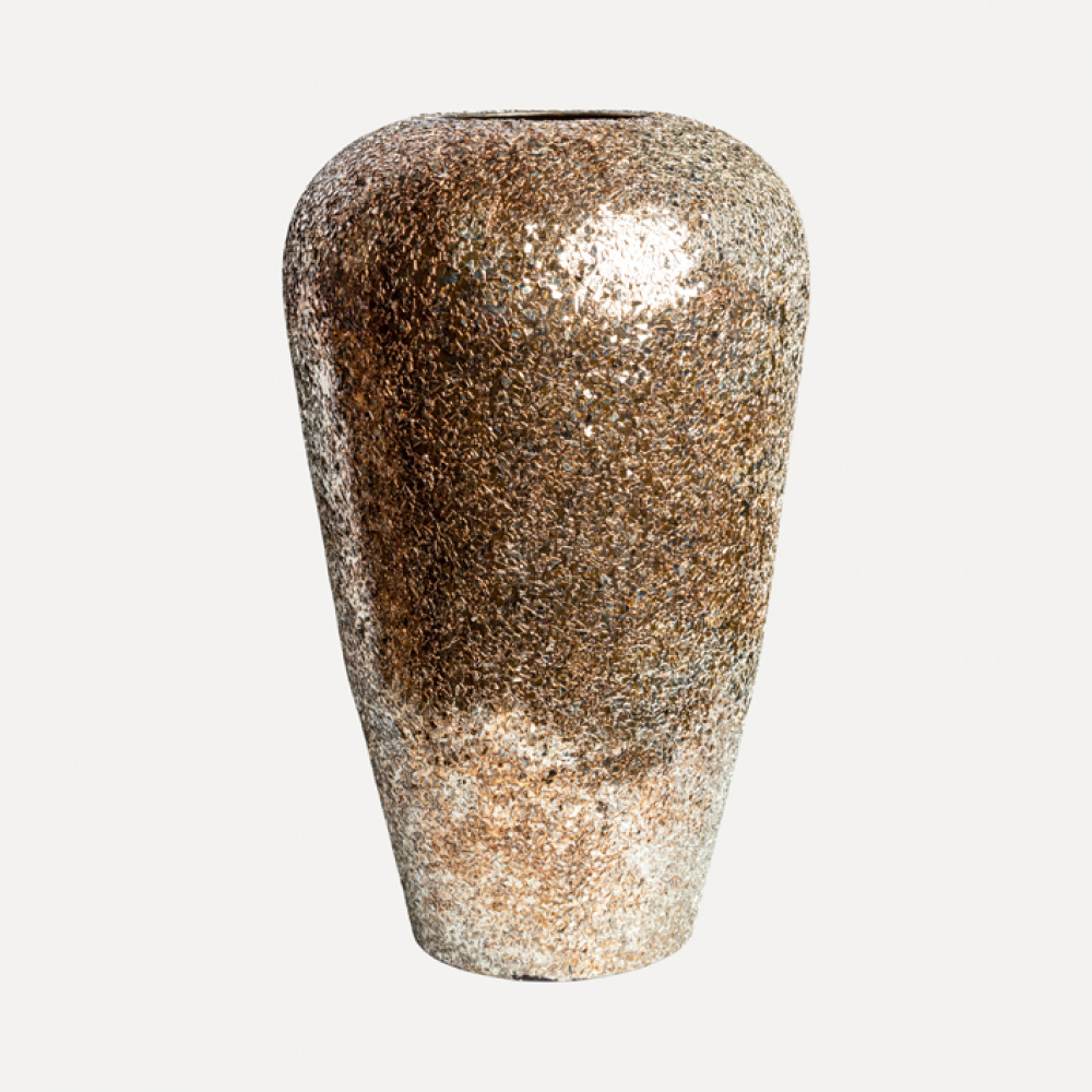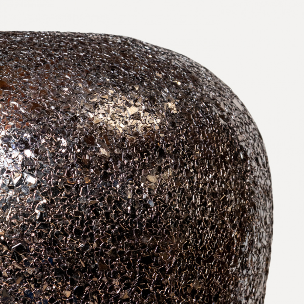 Прочность и долгий срок службы изделия гарантируются использованием металла в качестве основного материала. Благодаря особой фактуре с мозаичным рисунком и благородным цветам поверхность кашпо деликатно отражает свет, создавая тонкие блики и подчёркивая объём композиции.