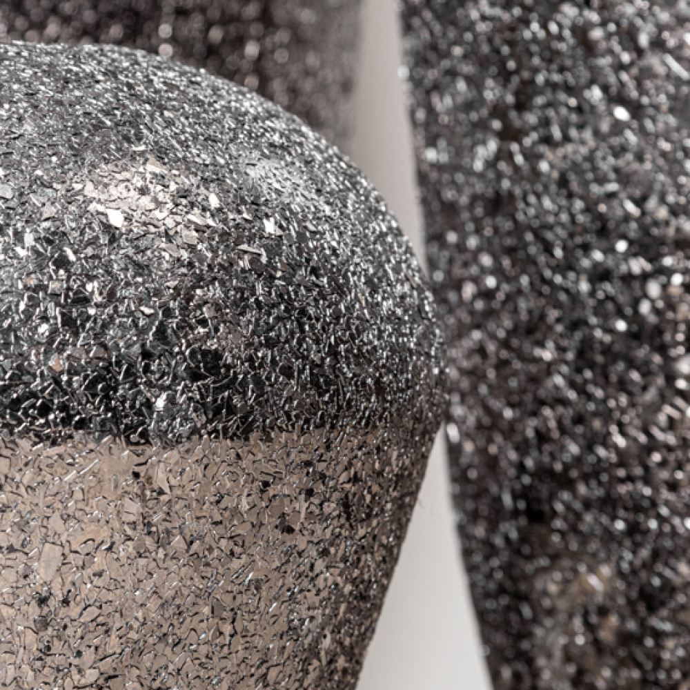 Изделие выполнено из металла, что обеспечивает его прочность и длительный срок службы. Особая фактура с мозаичным эффектом в сочетании с благородным цветом создаёт многогранную игру света: поверхность деликатно отражает лучи, формируя тонкие блики и подчёркивая объём композиции.