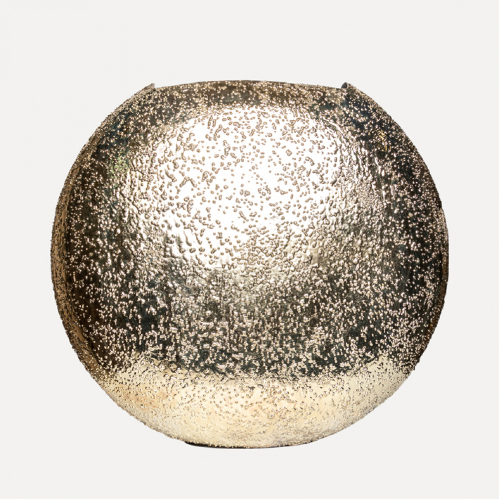Изделие выполнено из металла, что гарантирует его прочность и долговечность. Благородный оттенок шампань в сочетании с фактурным пузырчатым рельефом создаёт изысканный визуальный эффект: поверхность мягко отражает свет, добавляя композиции объём и игру бликов.